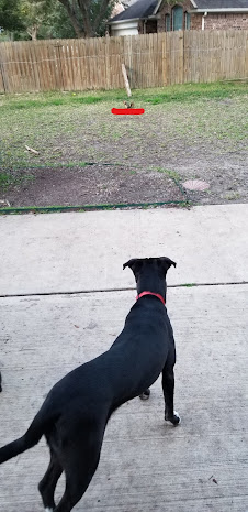 And the squirrel in the backyard is getting even more daring. He is now in the yard, digging and eating. Benson will go out, stand at alert, give the squirrel a stare down for what feels like minutes, and then with no warning take off after it. The squirrel squeals really loudly all the while running up the wooden post and all around the top of the fence to safety. This is several times a day now. I am guessing at this point that it's a friendly game of 'try to catch me.'