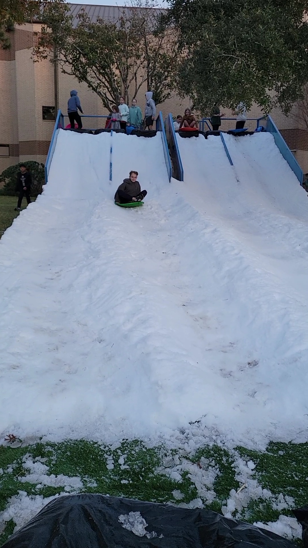 Mid-week, we went to our church's Christmas Blast. Our first stop was the hot dog stand and, as we ate, Josiah's friends came over to eat with him. They went off together for the next few hours, but we did pass each other periodically. Henry and Caroline did not want to do the sledding this year, but I encouraged them to do it just once so I could take a picture in the snow. They complied, but emphasized to me that they only wanted to slide just once. I kept an eye on them as they progressed through the line. There were three sets of slides, and I followed them to the far slide. I had my camera all ready and then this kid came down before them and he lost his flip flop in the middle of the slide. I was watching the events unfold as to who was going to get this kid his shoe when Henry walked up to me. I missed him going down. I quickly looked up to see Caroline reach the bottom of the hill. Sorry guys. You need to go again. They begrudgingly complied and the second time I got them.
